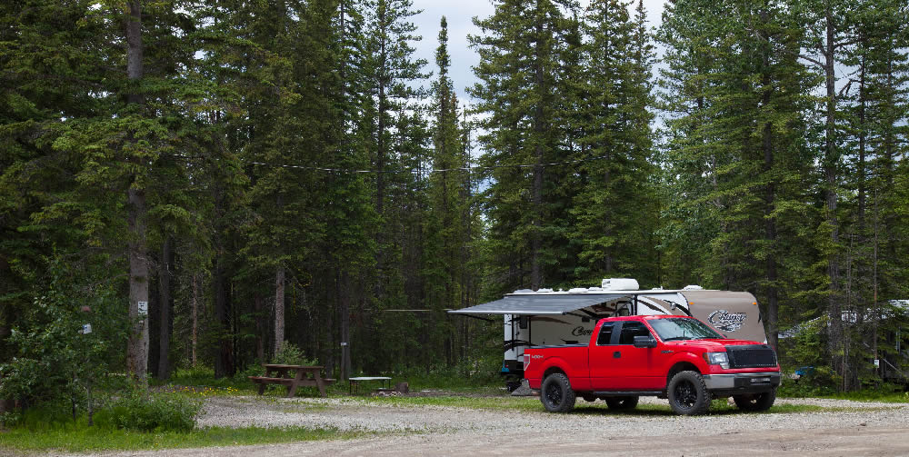Open all year! These sites are located at the entry of the campground, and are usually used by long term guests who are working in our area. They are exposed to more highway noise and traffic than our back camp or creekside sites. Permitted use is 1 camper/motorhome, 1 vehicle, up to 6 persons (any additional charges apply)POWER (30 Amp) & WATER SITES. We have a self-serve dump station and we also offer Mobile Dump Service (3x/week), whereby we come to your Site / camper and drain your Black & Grey tanks for you. The mobile dump service is operated from March – November. (fees apply). Permitted use is 1 camper/motorhome, 1 vehicle, up to 6 persons (any additional charges apply)